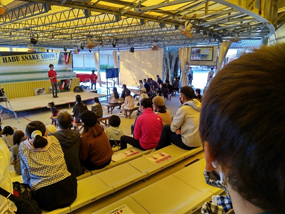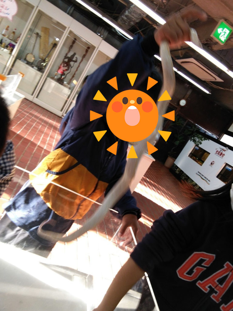 それから、「ウミヘビとマングースの水泳対決ショー」をみたり、実際に毒がないヘビを触ったり、カメなどの動物とも触れ合いました(^^)/