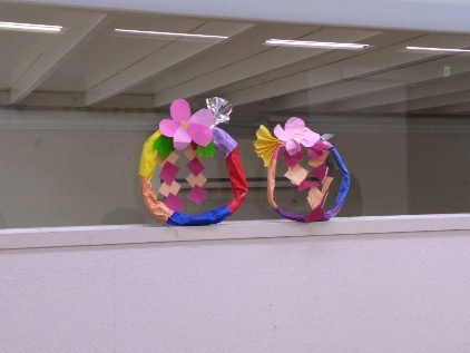 チラシを包めたり、色紙を貼り付けたり「魔除けは飾っとかなきゃ」と口も手も同時に動かせながら作業を進めてます(笑)