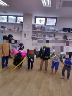 手からフラフープをくぐらせ、足もくぐらせ、どうにか協力しながらゴール目指して頑張りました☆