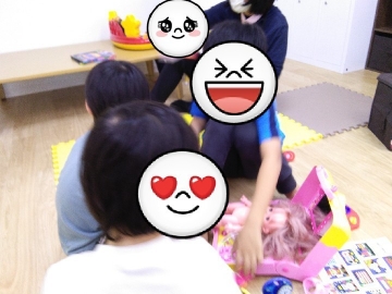自由時間には、異年齢交流を楽しみました(*^^*)年上のお兄ちゃんがいろんなおもちゃの使い方を教えてくれました☆