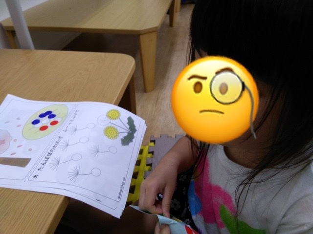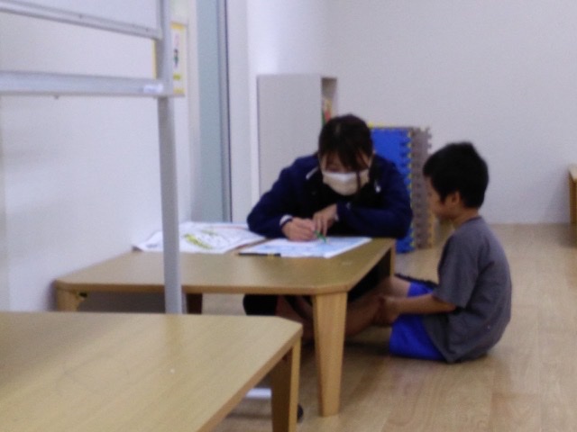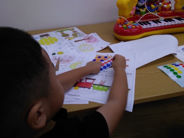 学習時間では、大好きなアンパンマンを前に落ち着いて座り好きな色を選んでシール貼りにチャレンジしてます♪