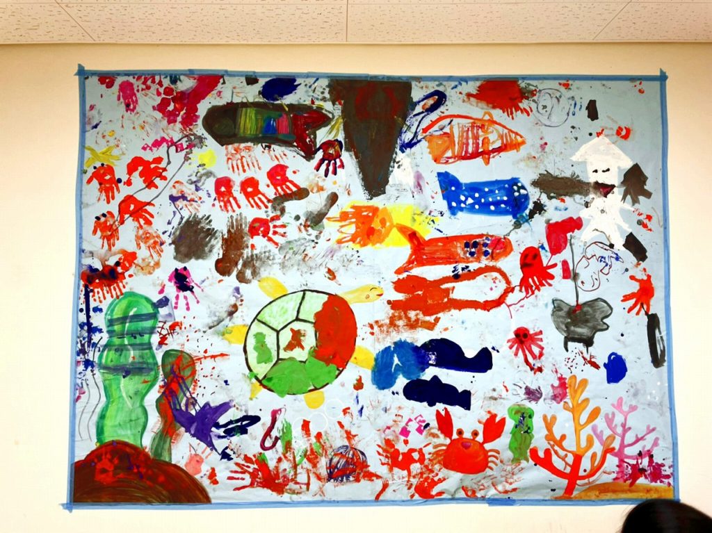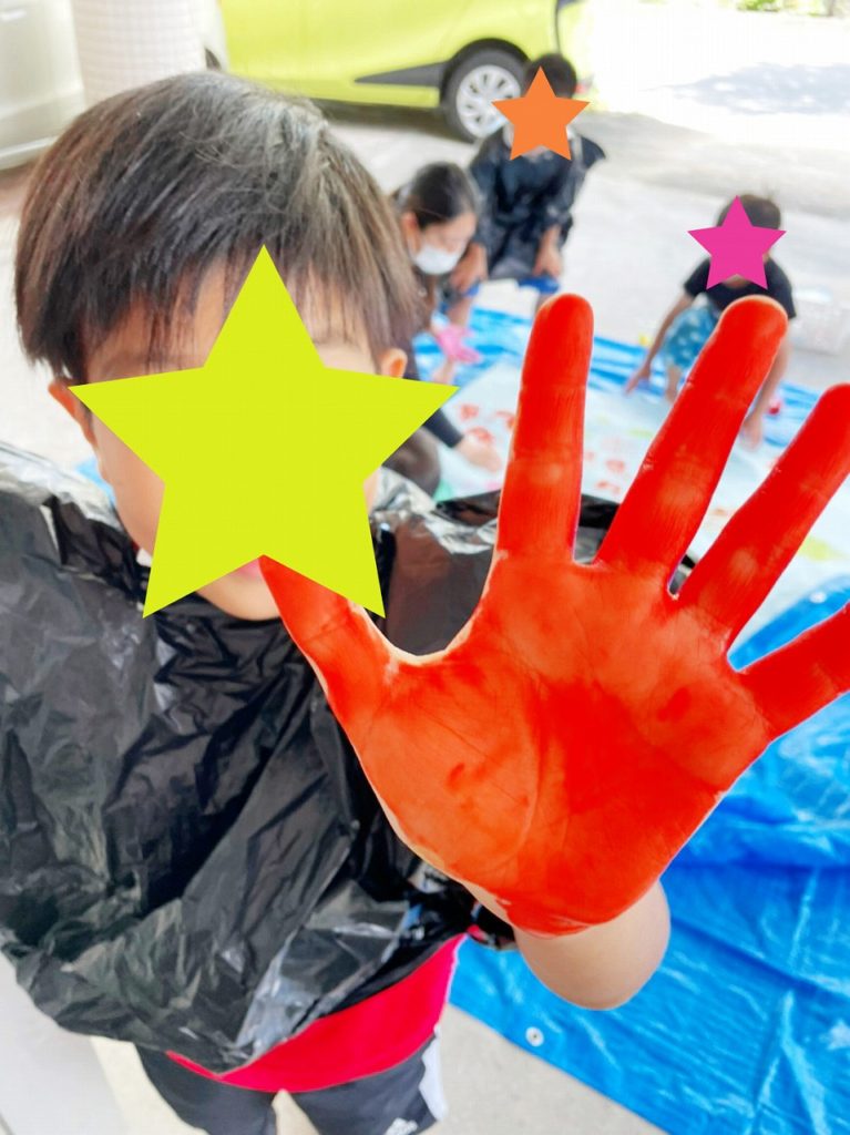 テーマは「海!!」手やスポンジ、筆などの道具も使いながら海の中の生き物を書いてもらいました(^-^)