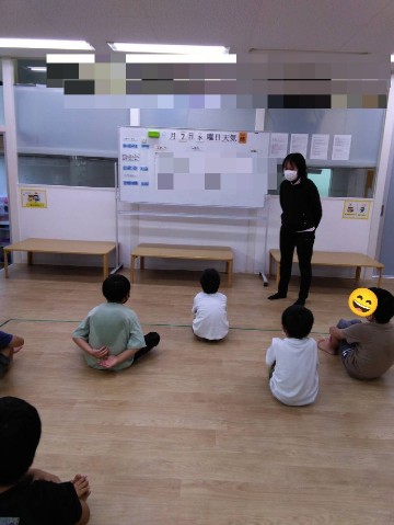 未就学児・就学児に分かれて本日も、はじまりの会からスタート♫姿勢を正してスタッフの声に耳を傾けています\(^o^)/