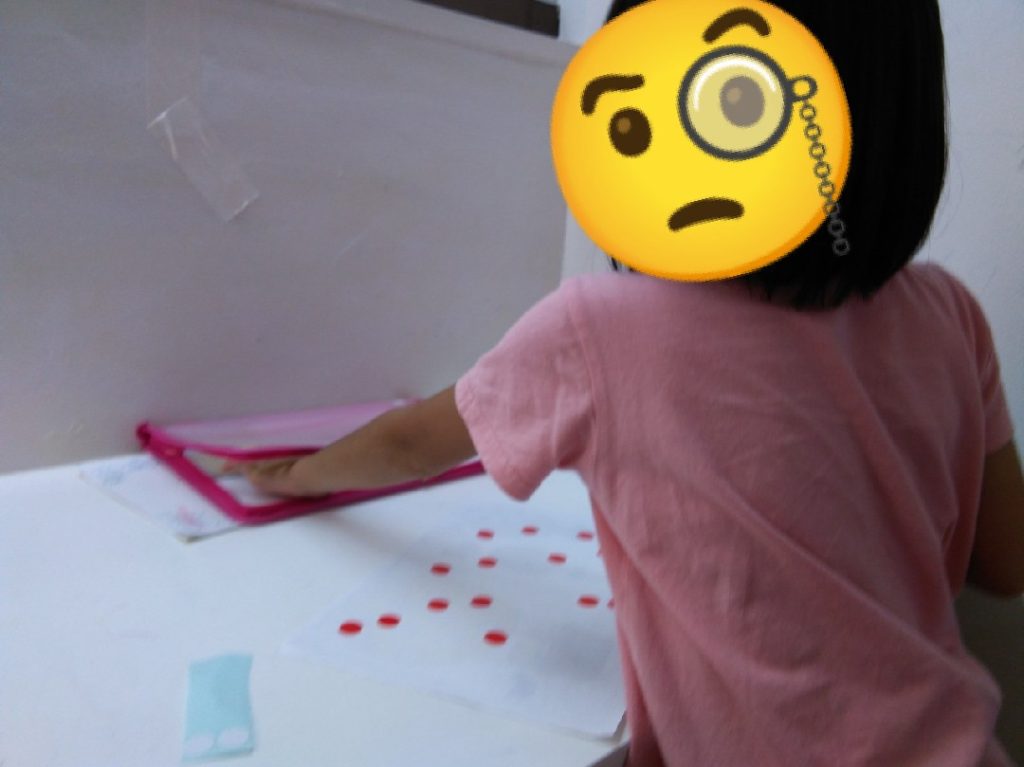 こちらは、色の認知確認や線をなぞるトレーニングを行いました!