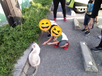 帰り際に猫が居たので興味津々♫猫じゃらしをして遊び、大満足なあろはkidsです☆