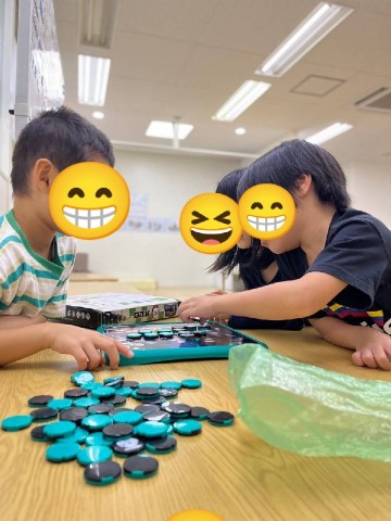 自由時間は、異年齢交流でオセロを楽しんでいます!互いに負けるのはいやー!と雰囲気がガンガン伝わってくる真剣勝負です😆