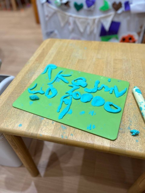 未就学児は、感触遊び♫中には粘土を使って得意なローマ字をスタッフと一緒に仕上げています\(^o^)/ 鉛筆を握ると口ずさみながらローマ字も書いていますよ〜☆