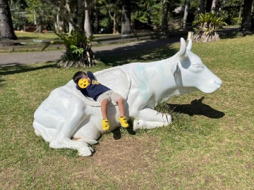 こちらは、休憩の一コマ‥(笑)大人びた格好で手を頭に添えて牛の上でまったり(笑)天気にも恵まれ最高な1日となりました〜★