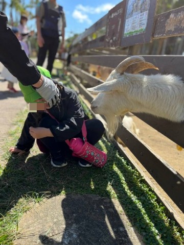 餌あげに夢中になり、ヤギに舐められそうになる場面もありまりたがスタッフがギリギリセーフな所でカバーしつつ(笑)最後まで沢山の動物との触れ合いを楽しんでいました〜\(^o^)/