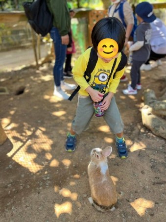 可愛らしいうさぎとお喋り中?☺️対面できて児童も満面の笑み♡
