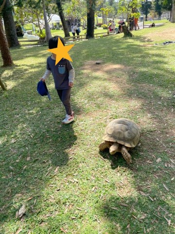 亀の触れ合いコーナーでは、陸ガメがノッソリ歩きで児童と一緒にお散歩♡