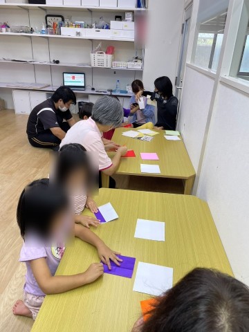 こちらは自由時間の様子です(*^^*)紙飛行機づくりで楽しくなったのか、引き続き折り紙に夢中なアロハキッズも✨「お花つくって〜💐」とスタッフに伝えていました(^^)