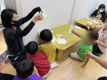 「ここまで折れましたかー?」というスタッフの声かけに、「こんな感じー?」としっかり確認するアロハキッズです(*^^*)