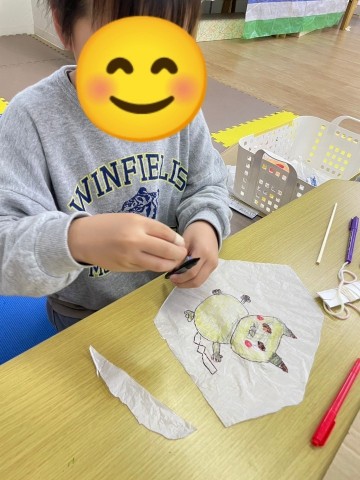 本日の課題は「微細活動 凧づくり🪁✨」まずは未就学児クラスの様子をお伝えいたします✨