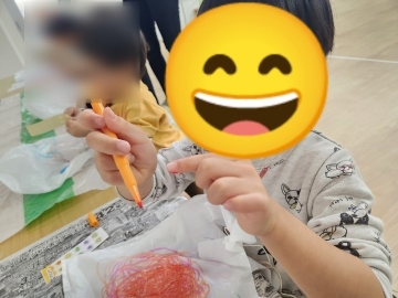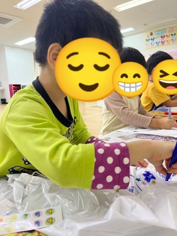 未就学児さんは、ペンを握りイラストをかいたり、シールをビニール袋にペタペタと貼り、手指の「握り」「つまみ」といった微細運動を行いました✨