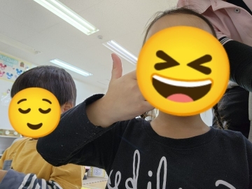 みんな上手に手指を対立させてシールをつまんだり、もう片方の手でシール台紙をうまくもって、シールのつけはずしができていました(*^^*)