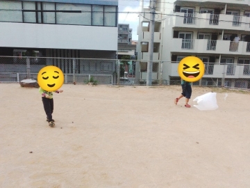 自分でつくったオリジナル凧をもち、走ると、、(笑)🏃フワフワと凧あげ成功🪁✨楽しくなっちゃって、走りまくるアロハキッズたちでした(笑)