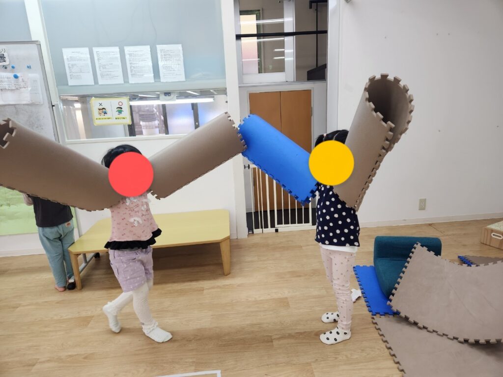 マットでロボットに変身したりと自由な遊びでお友達と過ごしました!(^^)!本日のブログはここまで☆