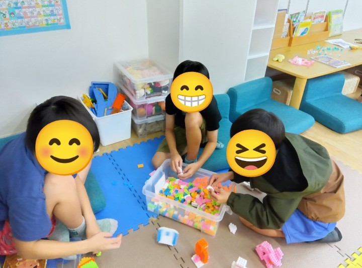 課題がおわると、みんな大好き自由時間✨️お友達を誘いブロック遊びをしたり、塗り絵や型はめパズル、おままごとをしたり✨️🥳スタッフと身体を使った活動をしたり🤸✨️