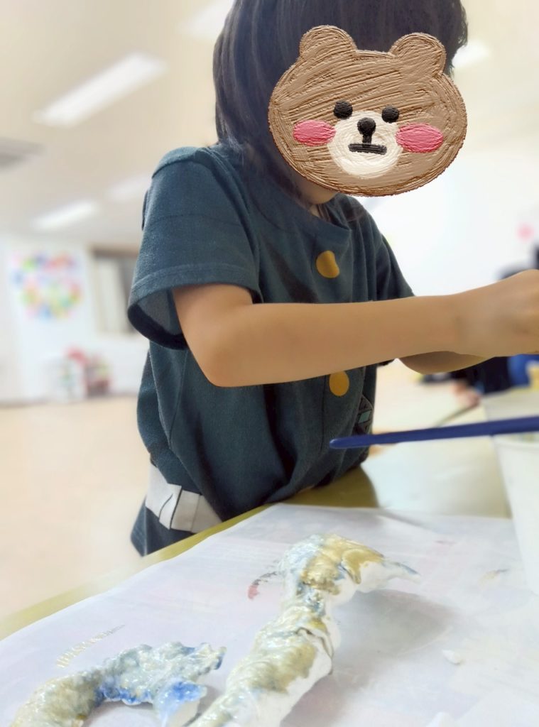 すっかり紙粘土に夢中のあろはキッズは、自由時間も紙粘土で「巨大コブラ🐍」を作成していましたよ😆🍀色どりも鮮やかで素敵ですね✨️🐍