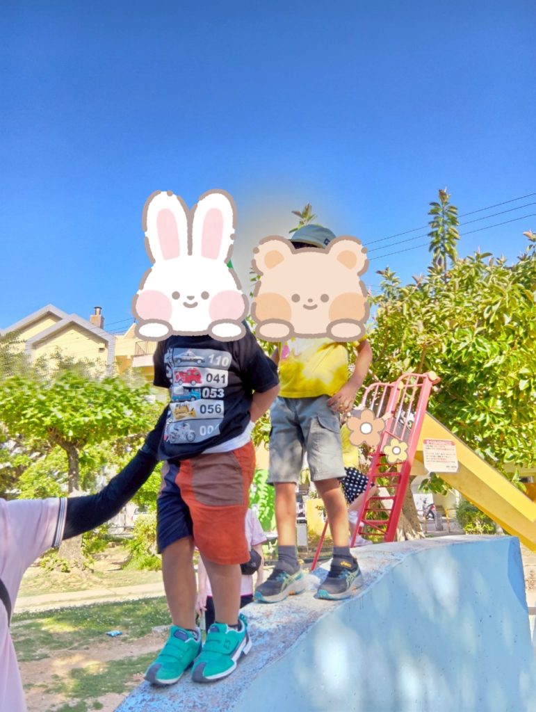本日の課題は遊具遊び🛝久々の晴天🌞近くの公園へお散歩しながら向かいました🚶