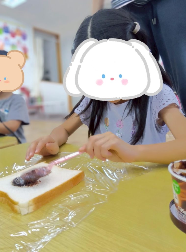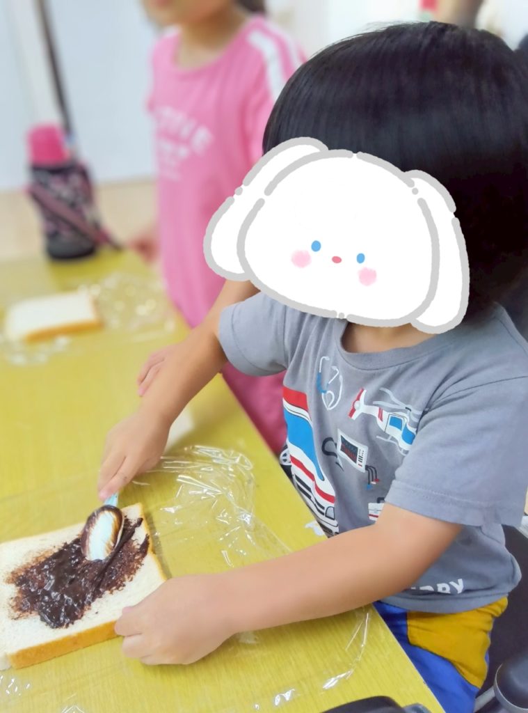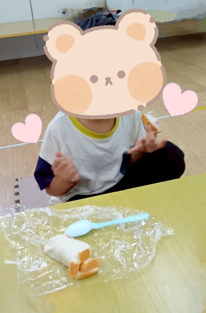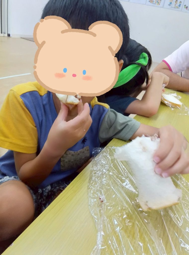 ジャムやチョコが苦手な子は塗らずにパンをくるくる巻いておいしくいただきました😀✨子どもたちはあっという間にペロリと完食しました😋❤️