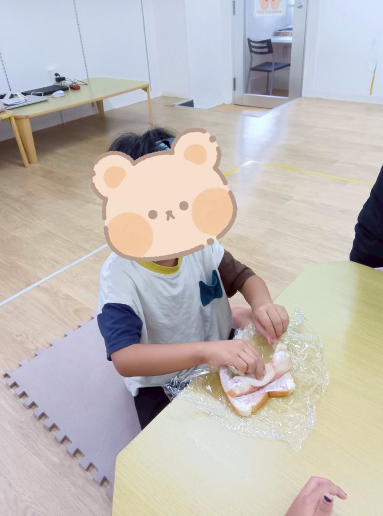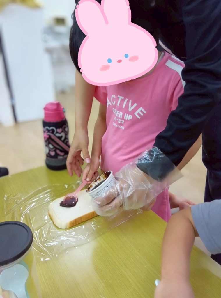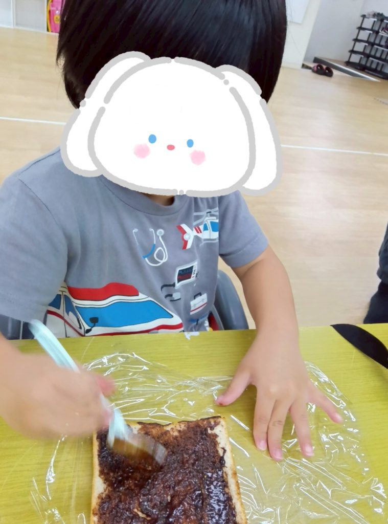 本日の課題は。。。みーんな大好きおやつクッキング🥪🍳食パンを使ってくるくる🌀サンドイッチを作りました✨