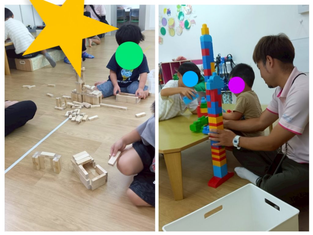 お友達とブロックを高〜く重ねたり、ジェンガ遊びをしたりして過ごしました♪