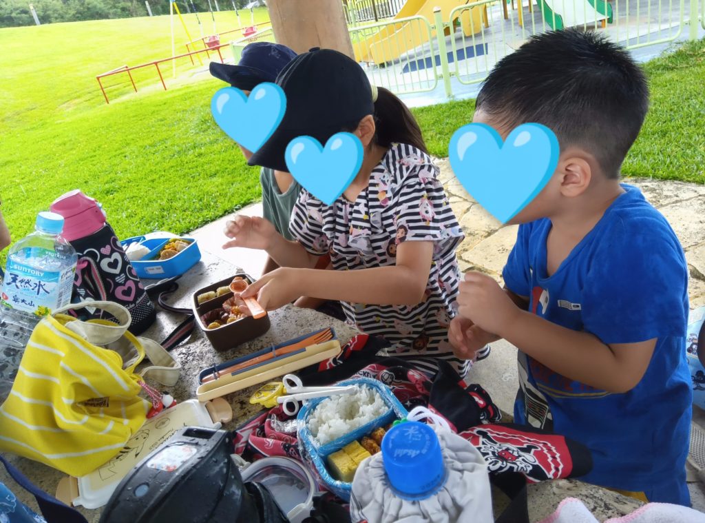 公園に到着したら、まずはお弁当タイム〜🍱くわっちーさびら🍱のあいさつをして美味しそうに嬉しそうにいただいていましたっ!