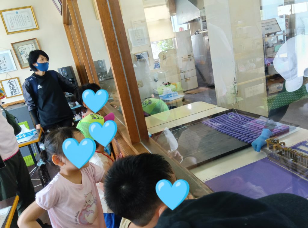 公園あそびを楽しんだあとは、恩納村にある『ながはま製菓』さんへ・・ちんすこうを作っている工場です。