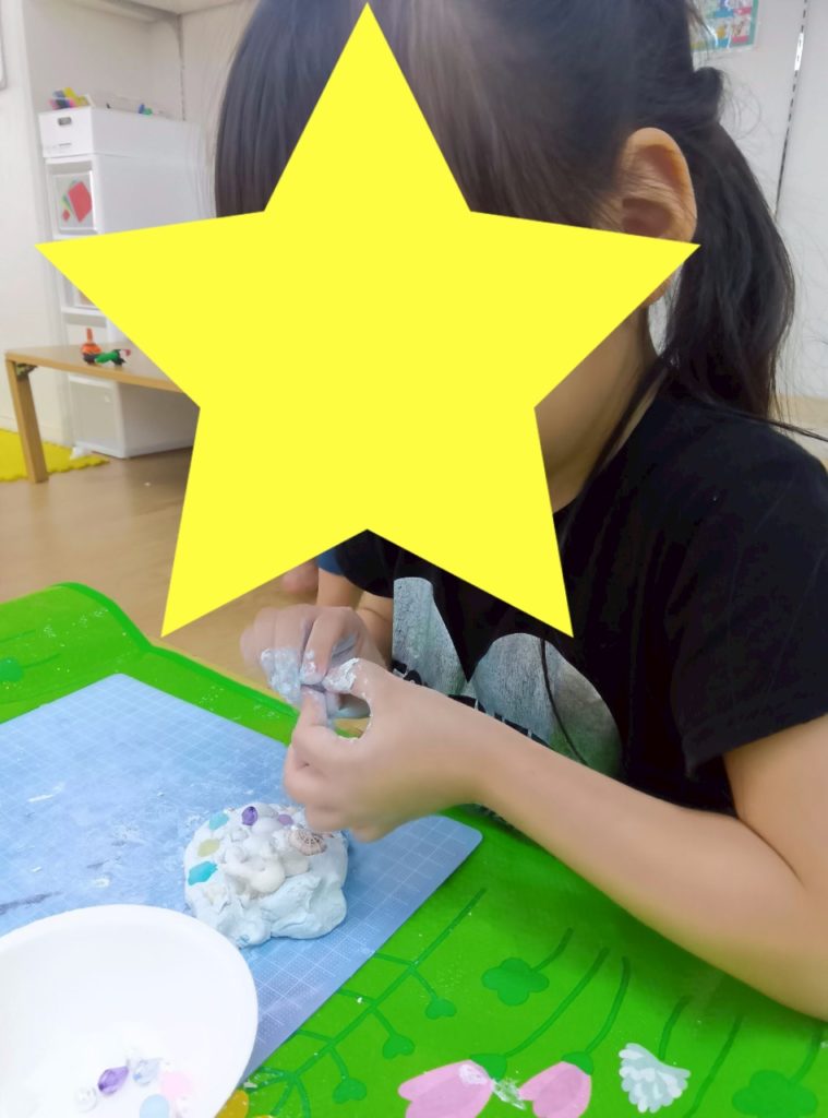 手指をたくさん使う制作活動で集中力もつきそう😌😌今はまだ乾かしているので、完成はお楽しみに♪完成したら写真が飾れます😍😍