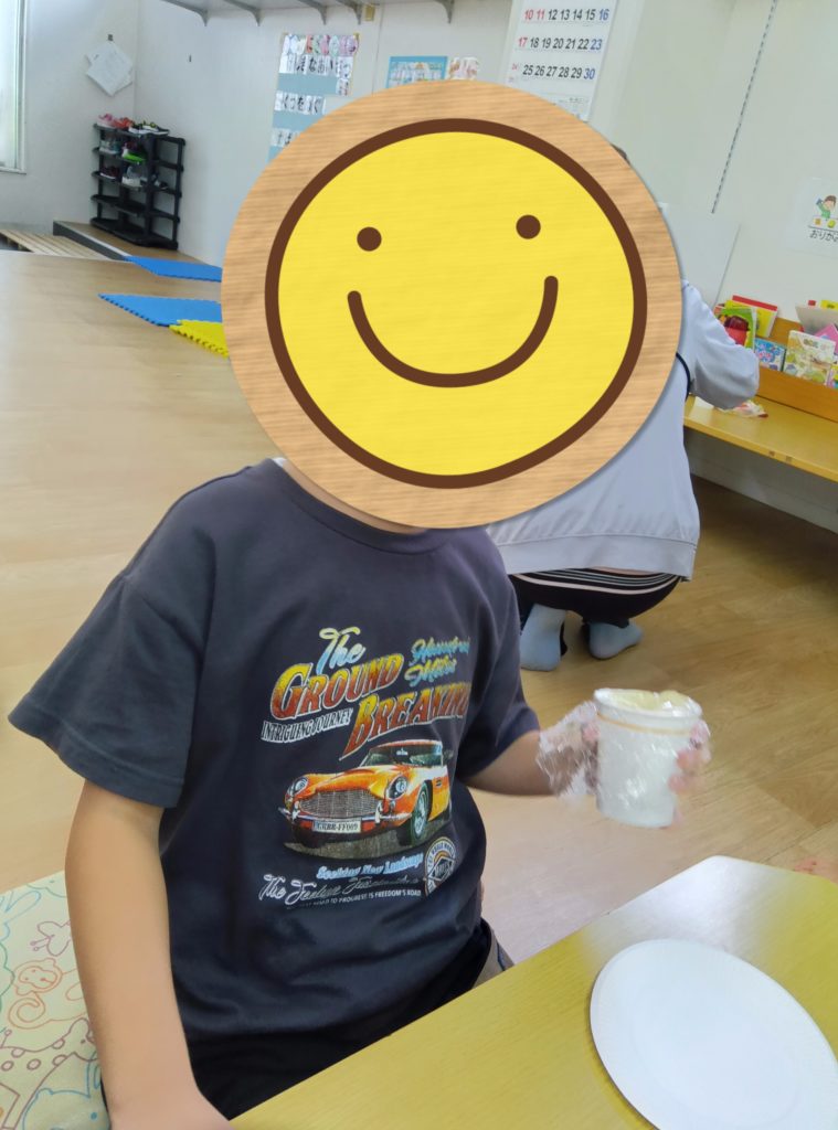 職員の説明をよく聞いて、皆で一緒に紙コップをふりふり!🍙小学生も未就学の子ども達も自分の力加減で一生懸命混ぜました🎶おにぎりを丸〜くしたくて沢山振っている子もいました🤭