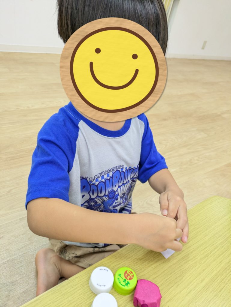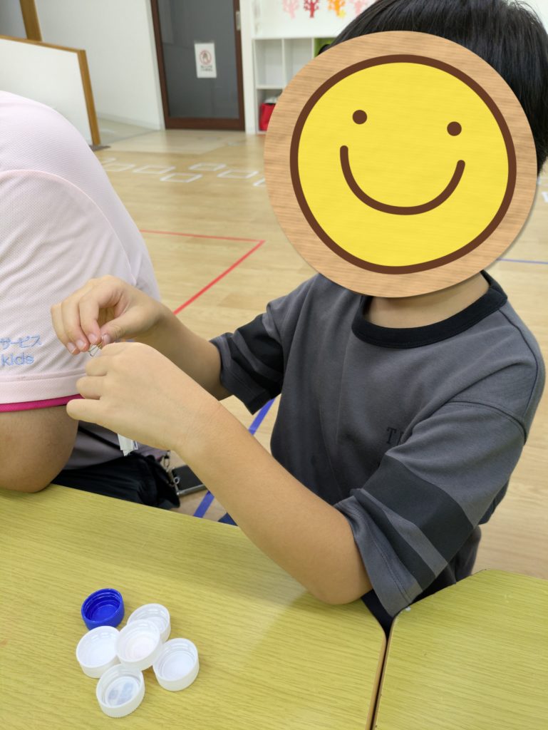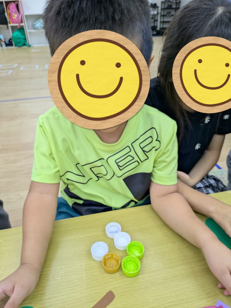 ペットボトルの蓋に折り紙を巻いてブドウの実を作ります!