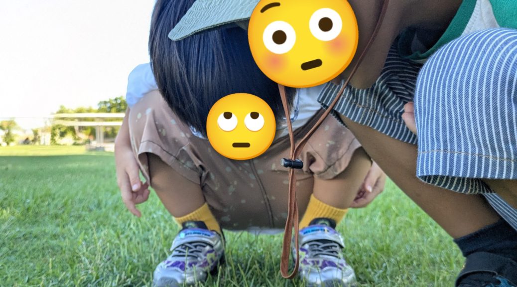 でも、虫がなかなか見当たらず「いないよ〜」と涙をや流したり、赤ちゃんバッタを捕まえ損ね悔しい思いをしたりと、うまくいきません。