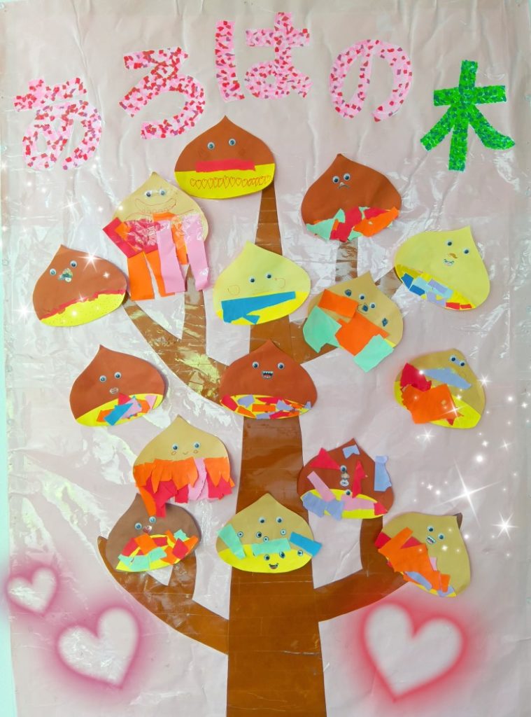あろはKidsが作った🌰栗を飾り付け、ステキなあろはの木が完成しました😊❤️