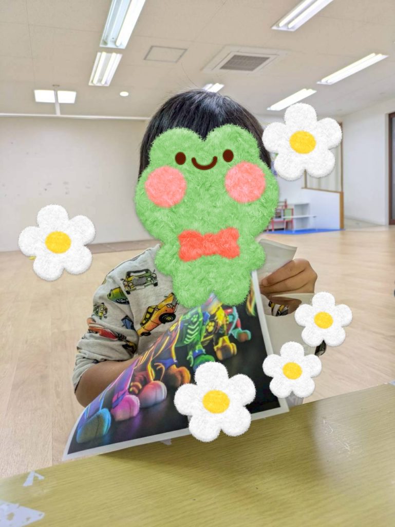 自由時間には、ストローと洗濯ばさみを使った手作りの輪ゴム鉄砲で的当てをたのしんだり、絵本や塗り絵、折り紙やシール作りなどさまざまな活動に楽しく取り組みました♪