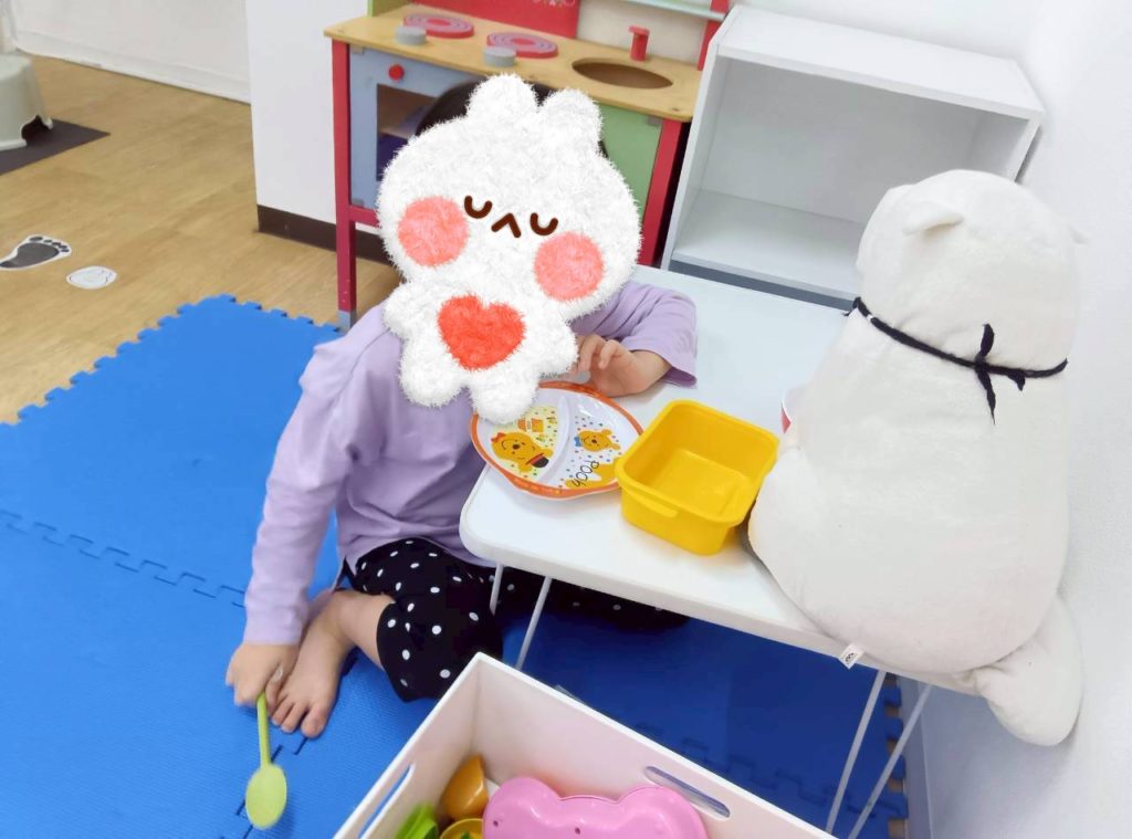 大好きな❤️いぬのぬいぐるみと一緒におままごとを楽しんだり、ハサミを使ってペーパークラフトをしたり、ラキューでコマを作って過ごしました😄🎵